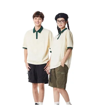 Custom Unisex Sportswear Casual Polo Shirts-100% Cotton Breathable Lightweight Dropped Shoulder Contrasting Short Sleeve Reverse